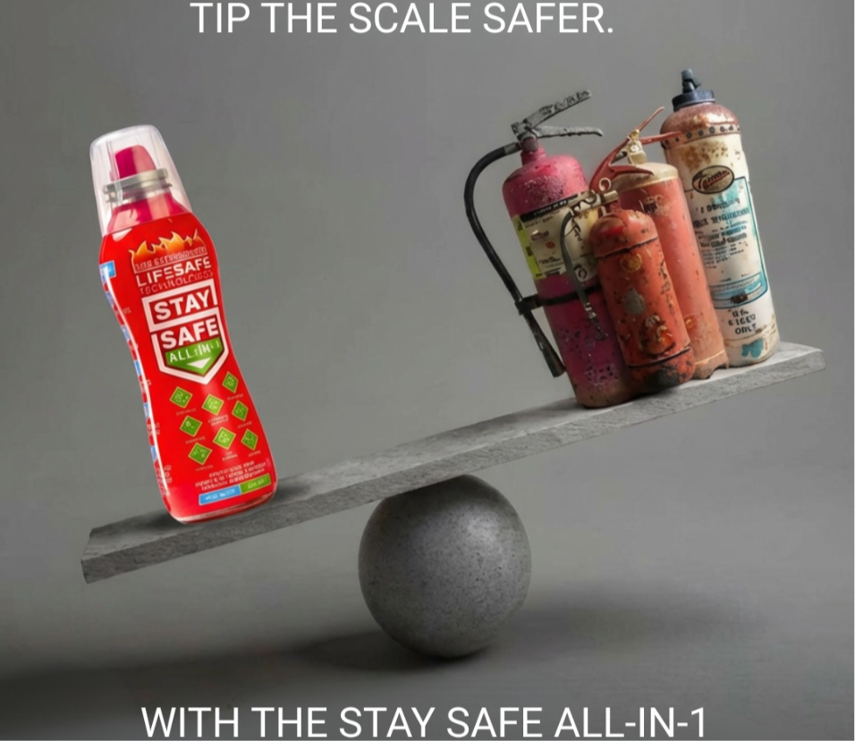 LifeSafe Technologies is a fire safety technology business dedicated to developing eco-friendly, highly effective fire extinguishing products. The company is best known for its innovative “StaySafe All-in-1” and “StaySafe 5-in-1” portable fire extinguishers, which use a patented, non-toxic, and fluorine-free extinguishing fluid. These compact, lightweight extinguishers can tackle multiple types of fires, including electrical, cooking oil, petrol, and even dangerous lithium-ion battery fires. LifeSafe also develops specialized fluids for industrial applications and thermal runaway prevention. Their mission is to provide practical, accessible, and environmentally responsible fire safety solutions for homes, vehicles, and workplaces.